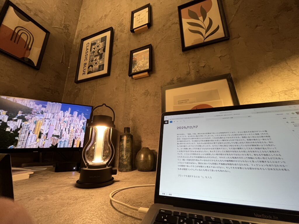 源氏を読む。「須磨」の巻。源氏の良き庇護役であった父桐壺帝が亡くなり、さらに源氏の女遊びがついに露呈したことで、右大臣方に権力が移ってしまった。いたたまれなくなった源氏は独りひっそりと須磨(今の兵庫県)の海辺の方に居所を移すことになるが、いわば左遷のようなものとなる。須磨に赴く前には父親の桐壺帝の墓を訪ねたり、その奥さんである藤壺の宮にも恋しい胸をあらためて伝えたり、前妻の葵の上一家にも丁重に断りを入れていたり、もちろん自分好みに育てる紫の上に対しても惜しみなく別れの辛さを伝える。他にも六条の話だったりかつての愛人だったり、わりに丁寧に旅立つ知らせをしているのが興味深いような気がした。さて須磨に移ってその後どうなるのかはまだ読めてない。ただ話の展開として大きく物語が進んでいっている気がするのでまぁまぁおもしろい。あとそこかしこに源氏や女性たちの悲しみを余すところなく表現されていて、ここにこそ源氏のもっとも表現したい核の部分があるのではないかと思う。単なる不倫劇としてみるともちろんふしだらで非道徳的なものだけれど、それだったら鬼滅の刃だって物騒にも若い男どもが刀を持って人(鬼)の首を切り刻んでいるわけだからそんなもの倫理観のかけらもないと言って非難することはナンセンスというほかはない。源氏においても同様に不倫劇は物語を成り立たせる、フィクションを成り立たせる一つの要素であってそこが本質だと考えてはいけない。そしてその本質となる部分がおそらく日本文化の本質ともある程度リンクしているとも考えて良いかも知れない。