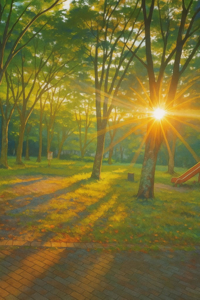 近くの公園を探し求めて歩いたけど迷子になった。たまたま辿り着いた「けやき公園」なるところにけやきの木がいくつも聳えていて、その木々の奥間から差し込む夕陽が美しかった。葉先に黄色い閃光が反射してキラキラ輝いているその一瞬に、心をときめかせた。もしかしたらもっと美しく見える画角があるやもしれない、と思って別の角度から葉先に目をやると、もうその煌めきは失われていた。あわててもとの位置に戻ってもう一度その一瞬を確かめようとしても、もとには戻らなかった。